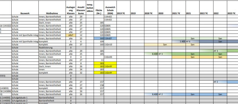 Neben der Finanzmittelplanung selbst beschäftigt sich diese Investitionsplanung auch mit dem Organisatorischen von Schulsanierungen bis ins Jahr 2033.