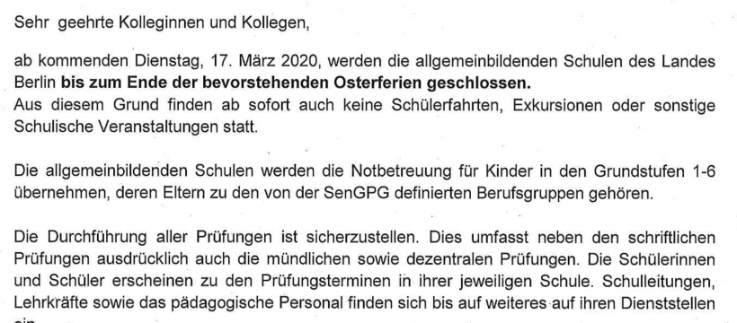 WeiterlesenSchreiben der Senatsverwaltung für Bildung, Jugend und Familie vom 15.03.2020
