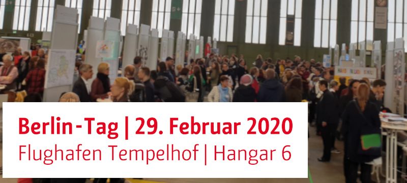 Während die ITB abgesagt wurde, durfte der Berlintag am 29.02.2020 in einem Hangar des ehemaligen Flughafens Tempelhof stattfinden. Neben Kitas, stellen sich dort die Schulaufsichten der Bezirke, als direkt auch einige Schulen als Arbeitgeber vor.